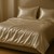 Wrap yourself in refined luxury with our champagne silk satin duvet cover, crafted from 100% Mulberry silk. This elegant cover glows with a soft, golden sheen and brings a breathable, hypoallergenic touch to your sleep. Naturally temperature-regulating, it keeps you cool in summer and warm in winter. A timeless addition to any luxury bedroom, it complements both classic and modern interiors.